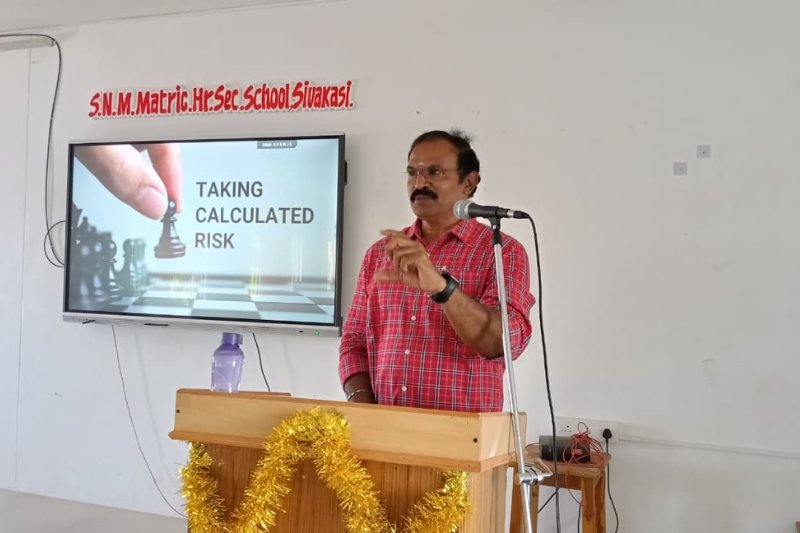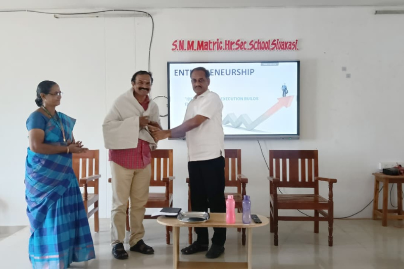 SNM Career Guidance Cell organised a guest lecture for the students of Std XI and XII on the topic "Succeed with entrepreneurial skills". The chief guest and the Resource Person was Mr. R. S. Selvakumar, a successful business tycoon. The Secretary of our school, Mr. M. Venkatesan felicitated the chief guest in the esteemed presence of the Principal, Ms. S. Selvi